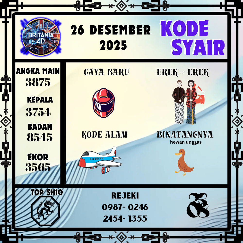 Kode Syair Britania4D Pools 26 Desember 2025
