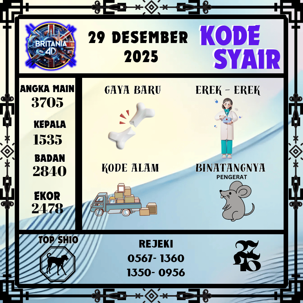 Kode Syair Britania4D Pools 29 Desember 2025