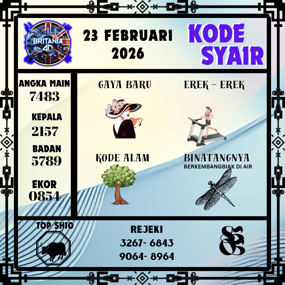 Kode Syair Britania4D Pools 23 Februari 2026