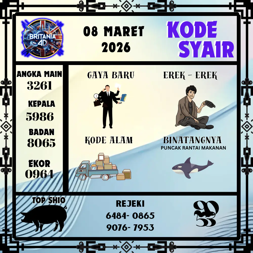 Kode Syair Britania4D Pools 08 Maret 2026