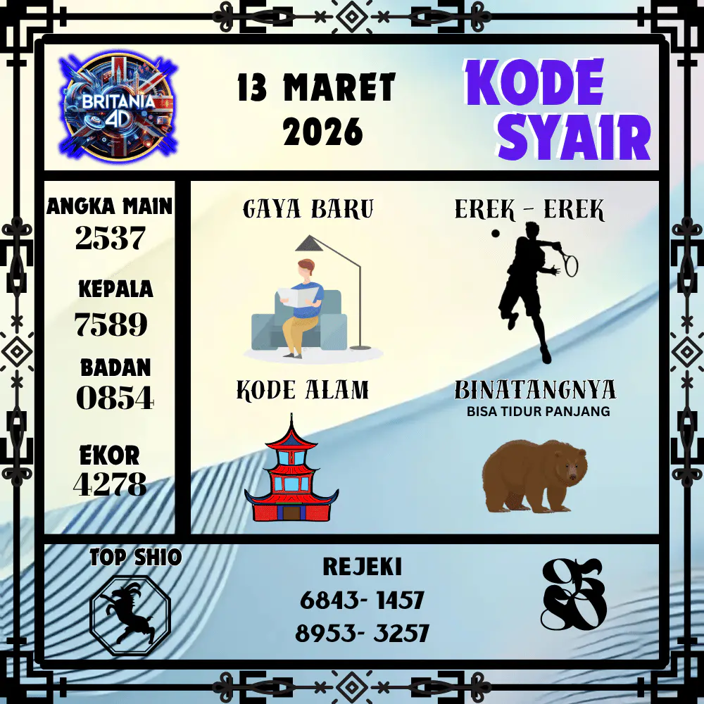 Kode Syair Britania4D Pools 13 Maret 2026